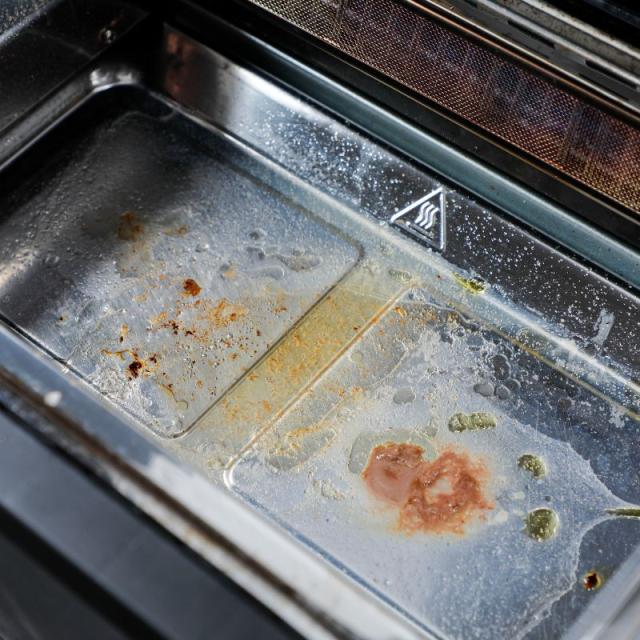 サイドに熱源となるヒーターがあることで、肉や魚などの脂がヒーターに直接当たらずに水皿に落ち、