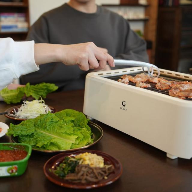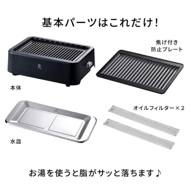 水皿に油が落ち、熱源であるヒーターはサイドにあるので煙が発生せず、快適な焼肉タイムをご家庭で楽しめます。