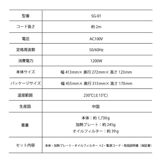 ※電源ON後、6〜7分ほどプレートを予熱することで煙が出にくくなります。