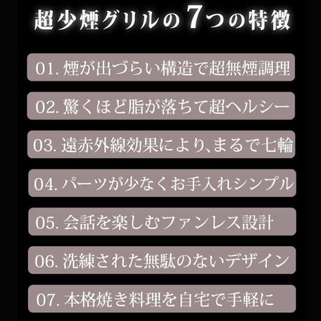 また反射構造で効率的に食材が過熱され煙をほぼ無煙にすることが可能となりました。
