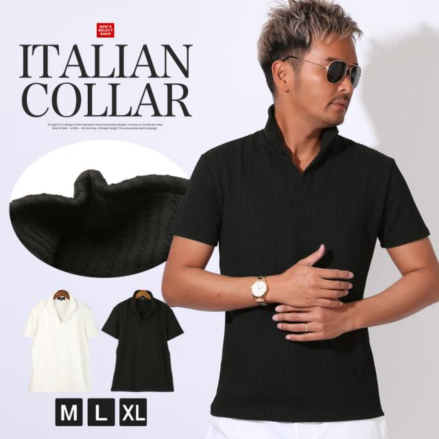 ポロシャツ カットソー 半袖 メンズ イタリアンカラー 立ち襟 ストレッチ【ロープストライプイタリアンカラー半袖ポロシャツ】 aa-3522