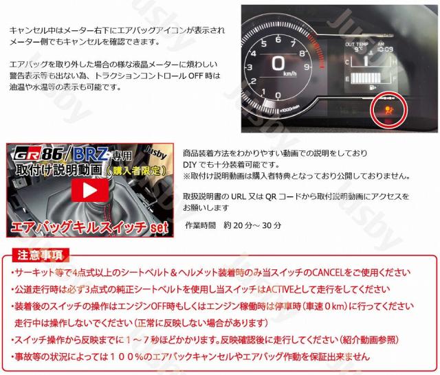 GR86 BRZ エアバッグキルスイッチset エアバックキャンセラー 赤LED付き サーキット走行に パーツ アクセサリー Jusby