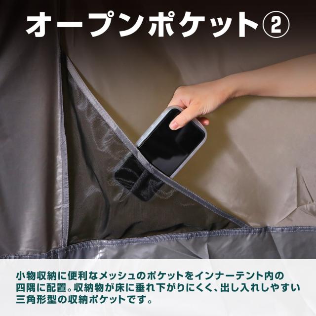 (2)小物収納に便利なメッシュのポケットをインナーテントの四隅に配置。