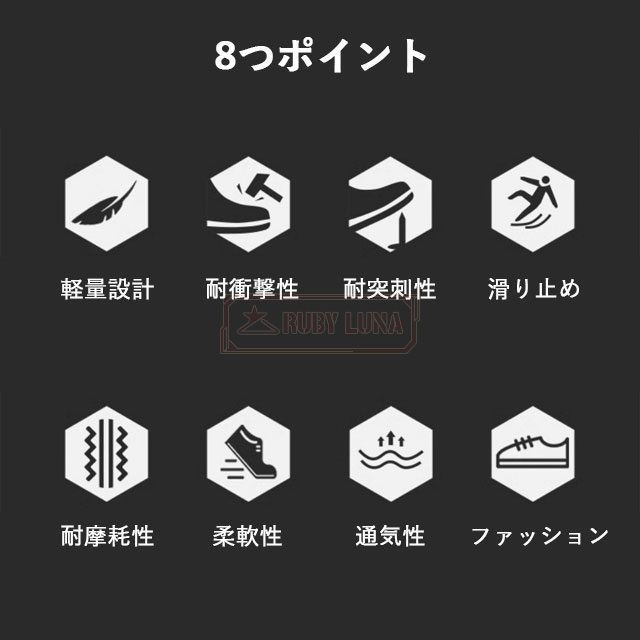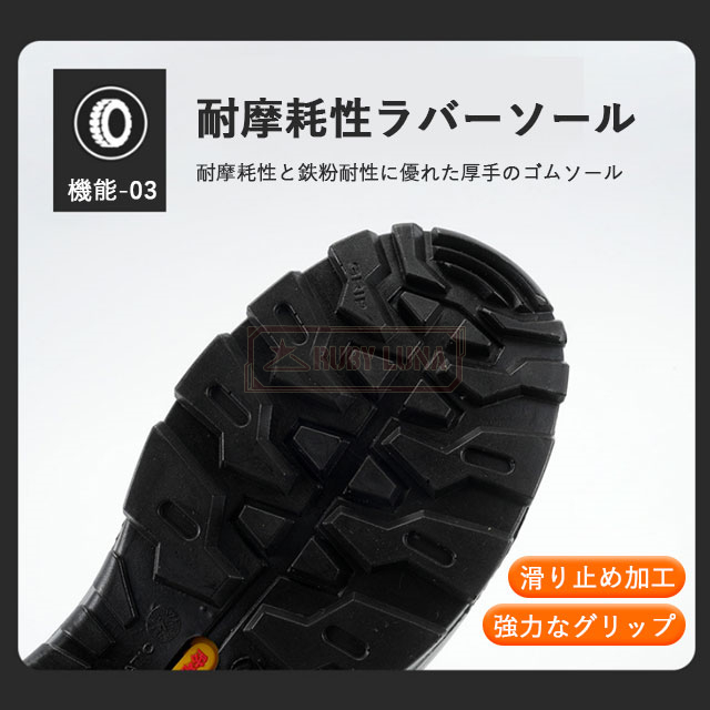 | 機能性 | ◆つま先保護 防刺 防滑 防水 軽量 通気 屈曲性 柔軟性 衝撃緩和 滑り止め 防滑性 耐磨耗性 |