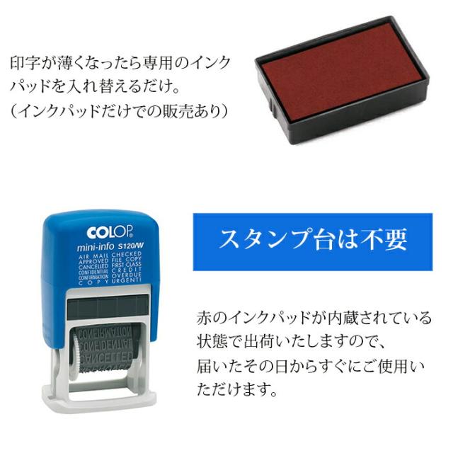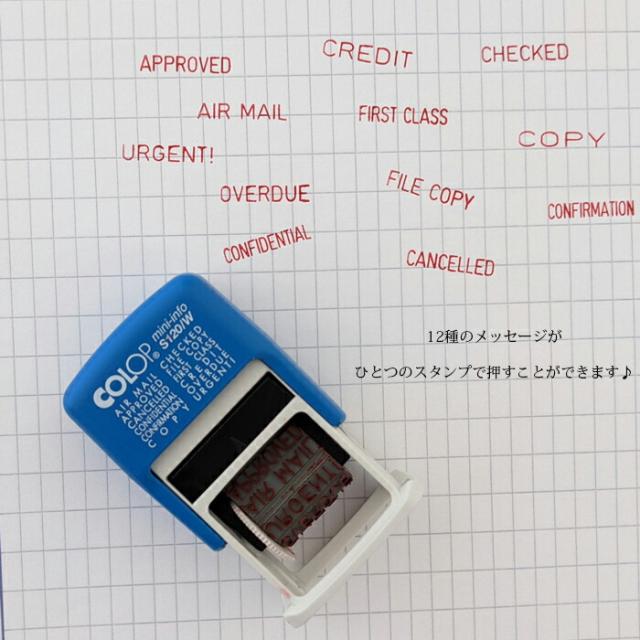 Mini-info S120/W ●The Wind(日本システムス)はオーストリアCOLOP社の日本輸入総代理店です。 ●COLOP社のスタンプ 「ミニインフォ S120/W」です。 ●12のメッセージをこのスタンプ1つで押すことができます。 ●インクパッドが本体に内蔵されているのでスタンプ台は必要なし。 ●連続してポンポンとスタンプ出来るので仕事の効率アップ♪ ●美しいフォントで読みやすい♪ ●かわいいルックスですが、耐久性あり! ●COLOPのミニデータスタンプはギミックが効いていておもしろい。このギミック、くせになります! ●メーッセージの変更は本体を裏返し外枠をプッシュして手で簡単に回転させればOK(動画あり) ●印字が薄くなったらを入れ替えるだけ。 ●赤のインクパッドがセットされている状態での出荷になりますので、届いたその日からお使いいただけます。 ●仕事はもちろん、オリジナル手帳やノート作りにも活躍してくれます♪使い方は貴方のアイデア次第! ● ■商品名:Mini-info S120/W ■商品コード:CLP120WR ■本体サイズ:W 4.2 x H 7.2 x D 2.4 cm ■材質:PS樹脂 ■重さ:23g ■印字サイズ:4mm×20mm ■印字カラー:レッド ■インク:水性顔料系インキ *海外輸入品ですので、製造途中でできた小さなキズや擦れ、外箱の汚れなどはご理解ください。 The Wind(日本システムス)はオーストリア COLOP社の日本輸入総代理店です。 |