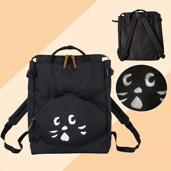 NE-NET ネネット リュックバッグ にゃー スクエアバッグ ディパック リュックサック ブラック レジャー 刺繍ねこ リュックサック 鞄 お出かけバッグ 収納 大容量 niya08