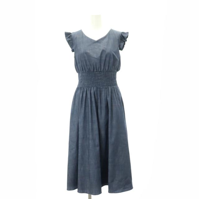 【中古】アベニールエトワール ショルダーフリル ウエストシャーリング ワンピース ロング ノースリーブ 40 紺