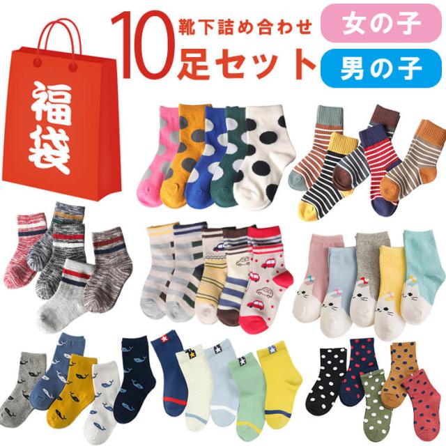 靴下 福袋 子供 靴下【メール便送料無料】10Pおまかせソックス福袋(靴下)子供用ショートソックス10足組☆女の子 男の子 デザインで可愛い アンクルソックス かわいい 靴下詰め合わせセット ジュニアくつした 通園通学靴下 子供服 春夏秋冬 クリスマス