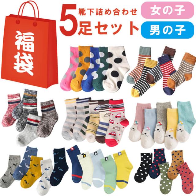 靴下 福袋 子供 靴下【メール便送料無料】5Pおまかせソックス福袋(靴下)子供用ショートソックス5足組☆女の子 男の子 デザインで可愛い アンクルソックス かわいい 靴下詰め合わせセット ジュニアくつした 通園通学靴下 子供服 春夏秋冬 クリスマス