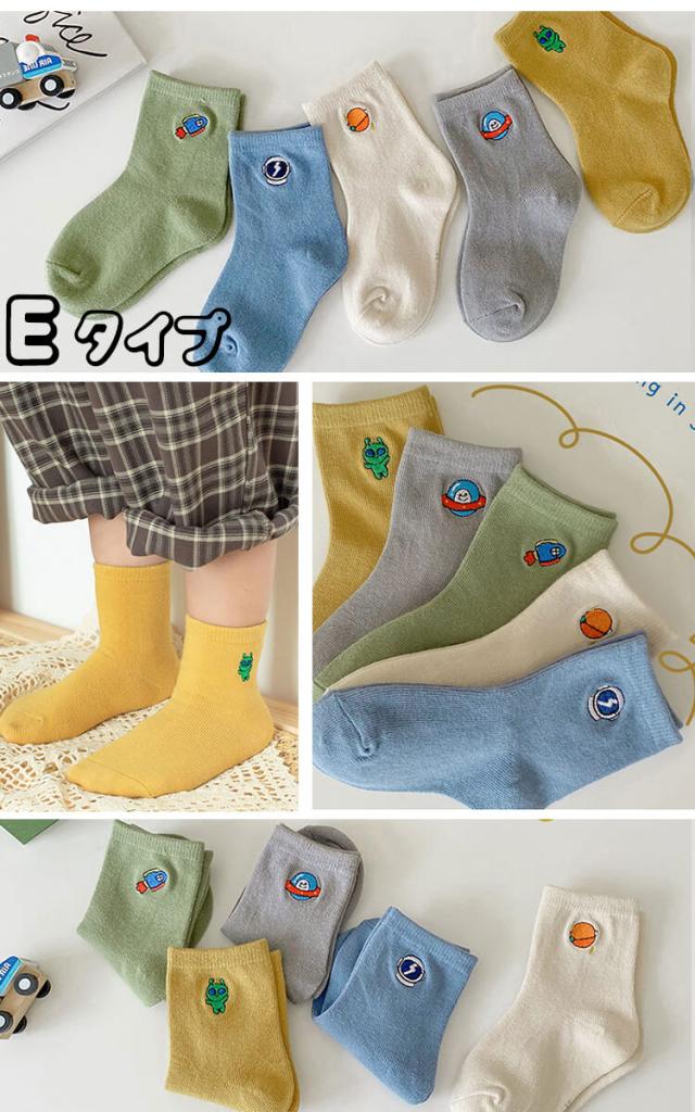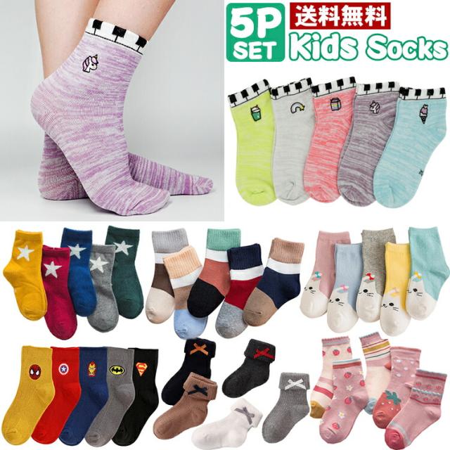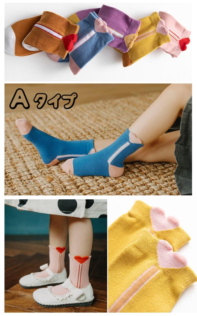 子供 靴下 秋新作 刺繍入り 【メール便送料無料】子供用ショートソックス5足組 男の子 女の子 後ろがハートデザイン アンクルソックス 野菜 フルーツ 恐竜 花柄 おしゃれ かわいい ベビー 靴下 ジュニアくつした 保育園 幼稚園 通園通学靴下 子供服 春夏秋冬