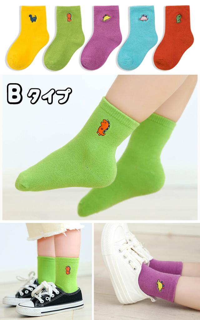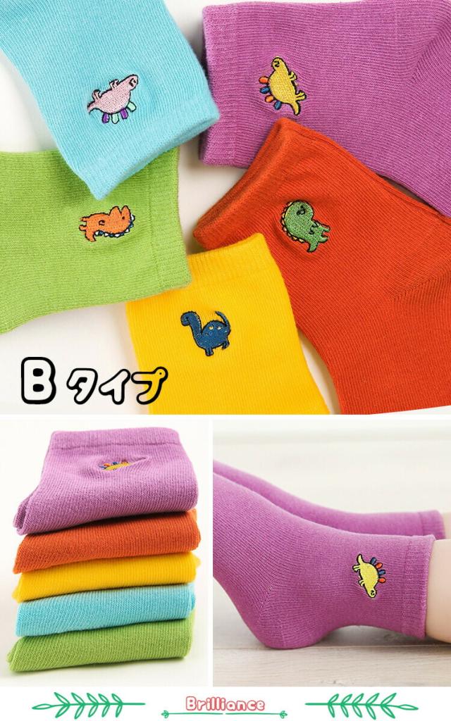 2点購入で100円OFFクーポン配布中★刺繍入り子供 靴下 キッズ ソックス アンクル 5足組 女の子 靴下 5P 送料無料 恐竜 花 ボーイズ&ガールズ ソックス