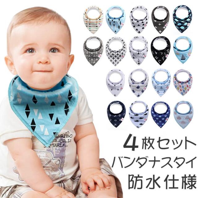 【新柄入荷】防水仕様 バンダナ スタイ 4枚セット 三角 ビブ スナップボタン ベビー 赤ちゃん キッズ 男の子 女の子 よだれかけ よだれカバー 出産祝い ベビー用品 新生児 防水 おしゃれ かわいい エプロン おしゃれ かわいい プレゼント 記念日 ギフト アニマル