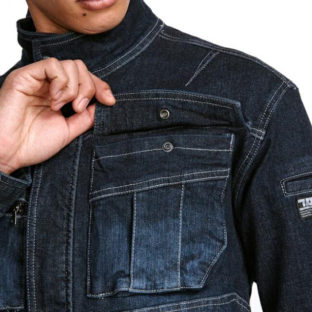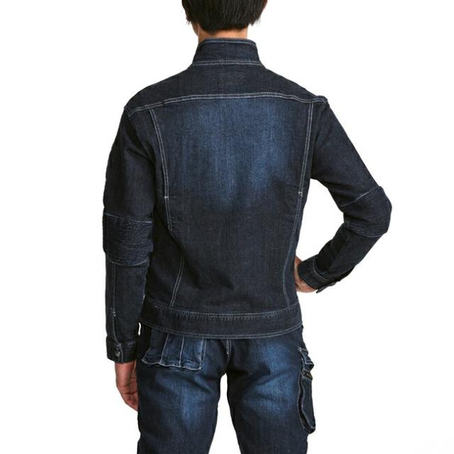 寅壱 デニム蛇腹ライダースジャケット 8930-554 | 作業ジャンパー 防寒 耐久性 高機能 メンズ 春秋 おしゃれ ワークウェア