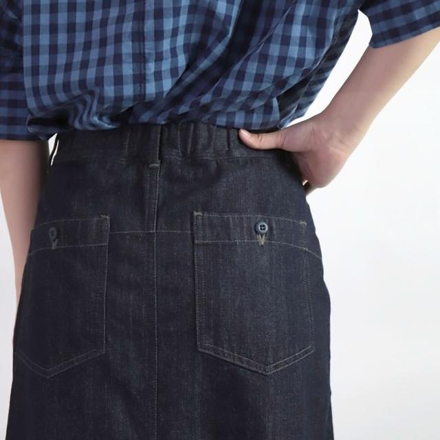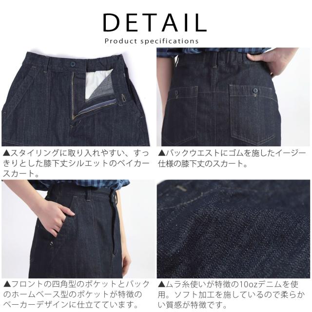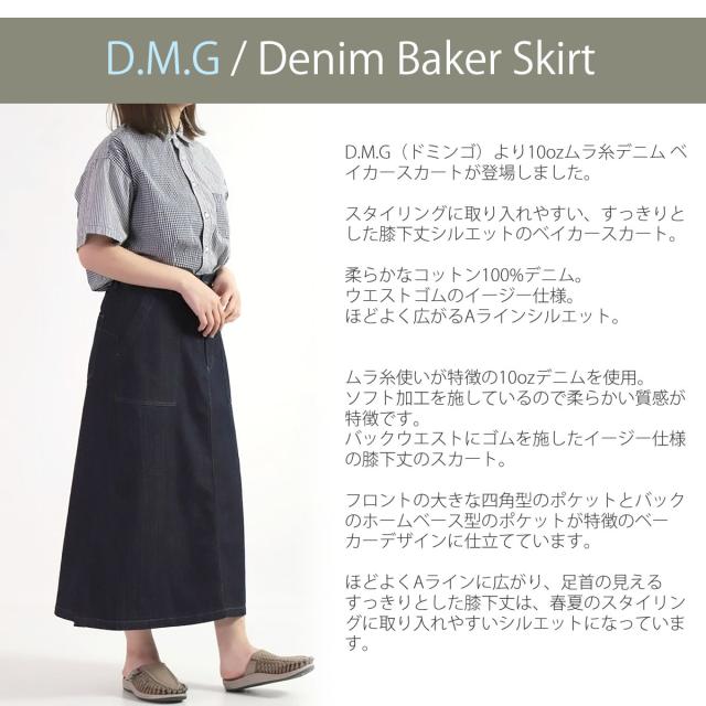 【 すっきりとした膝下丈シルエット 】ドミンゴ スカート DMG ムラ糸デニム ベイカースカート デニムスカート ( 17-0501D ) イージースカート ベイカースカート ウエストゴム ボトムス ひざ下丈 膝下丈 ミモレ丈スカート d.m.g ディーエムジー おしゃれ アーベン
