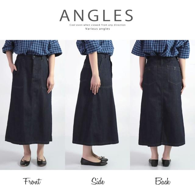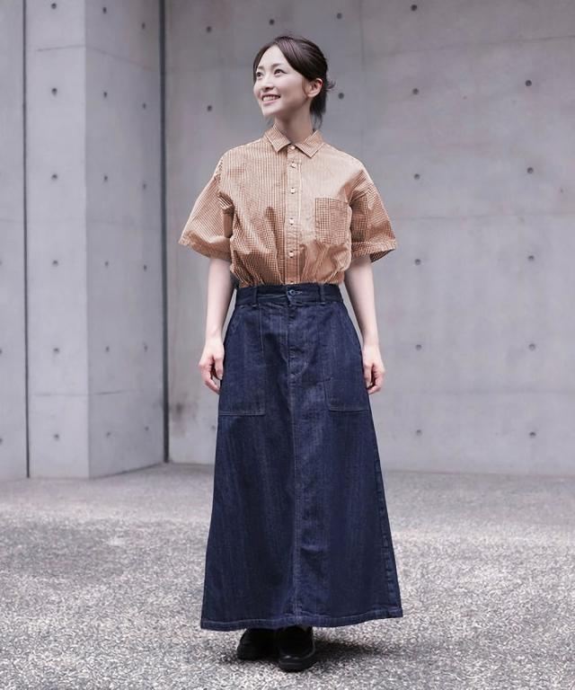 ほどよくAラインに広がり、足首の見えるすっきりとした膝下丈は、春夏のスタイリングに取り入れやすいシルエットになっています。
