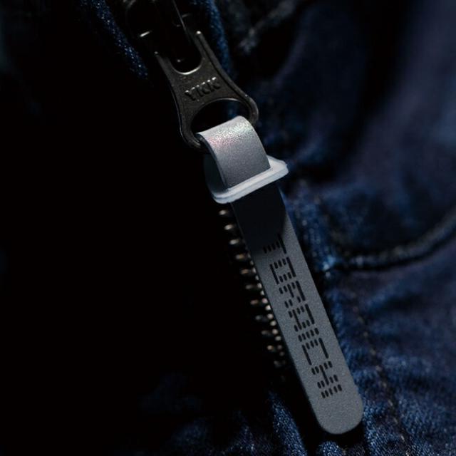 ●ポケットファスナーの左右務歯の色替え、立体ロゴなどさりげないポイント