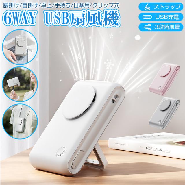 6WAY 腰掛け/首掛け/卓上/手持ち/日傘用/クリップ式 服の中に送風 腰掛けファン ハンズフリー ベルトファン 小型 ミニ扇風機 送風機 ベビーカー 父 母の日