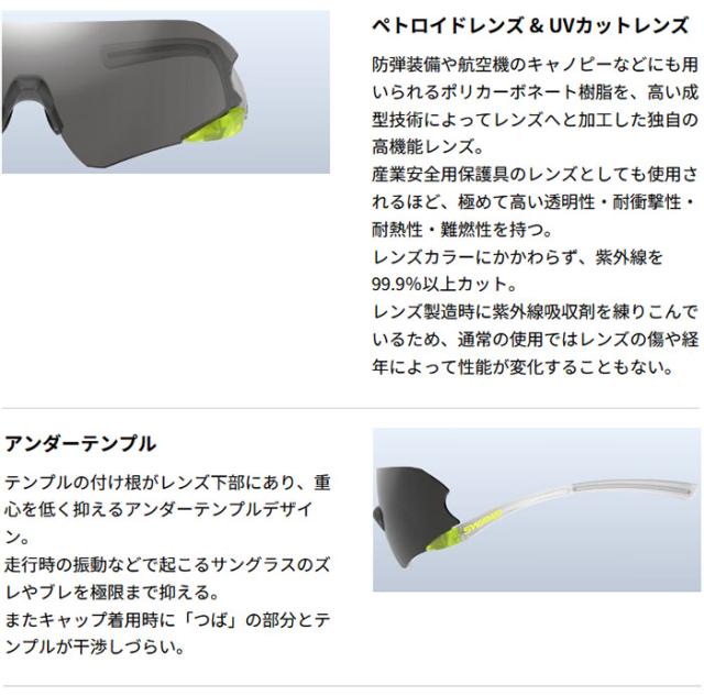 走行時の上下振動により起こるサングラスのズレを防ぐ「ノンスリップラバー」を後頭部に当たるテンプルの内側に採用しました。