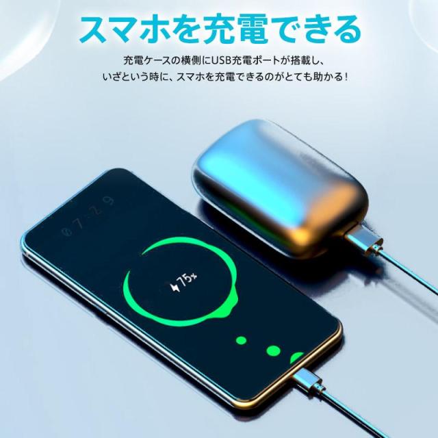 2200mAh大容量の充電ケースで、いつでもイヤホンをチャージでき、