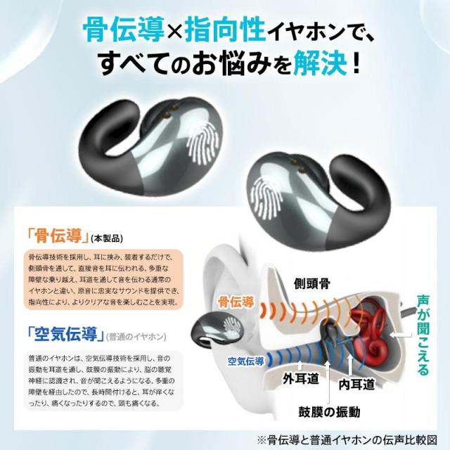 耳に挟むだけで、側頭骨を通して、直接音を耳に伝わる。
