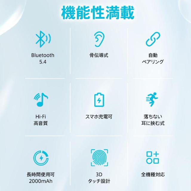 ワイヤレスイヤホン 骨伝導 Bluetooth 5.4 最新モデル スポーツ 3Dタッチ 2200mAh 大容量 最大150H再生 Hi-Fi 超軽量 フィット 父の日 母の日 ギフト