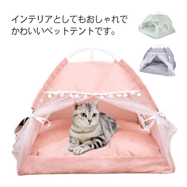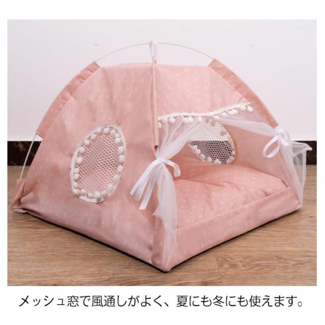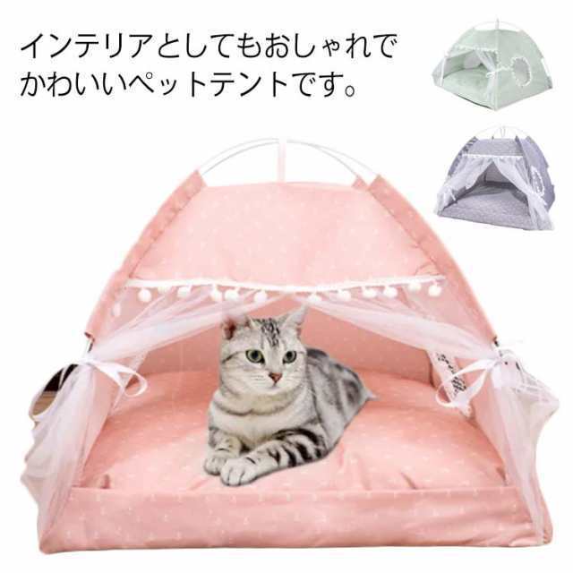 猫ベッド 猫テント ペットベッド 夏 ハウス Lサイズ(59×59×52cm) 犬 ドーム型 キャットハウス 通年利用 猫小屋 寝床 おしゃれ かわいい ねこ ネコ 小型犬 イヌ 通気性いい 暑さ対策 マットレス付き 猫用品 グッズ