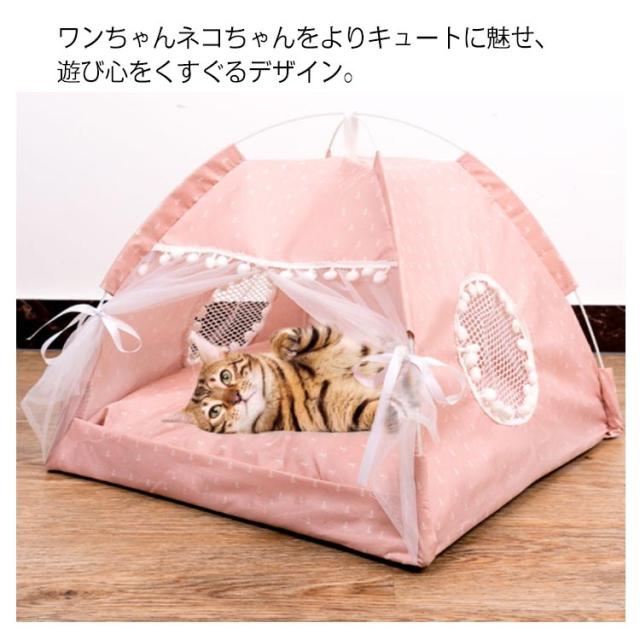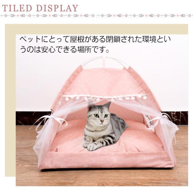 | インテリアとしてもおしゃれでかわいいペットテントです。 ペットにとって屋根がある閉鎖された環境というのは安心できる場所です。 軽量タイプなので、お部屋を掃除する時もサッと持ち上げて簡単に掃除することができます。 ベットのマットレス部分は取り外せる、テントは水洗いも可能です。 メッシュ窓で風通しがよく、夏にも冬にも使えます。 ワンちゃんネコちゃんをよりキュートに魅せ、遊び心をくすぐるデザイン。 ワンタッチでパッと開くので複雑な組み立ては不要。 また簡単に折りたためるので移動も楽々。 | |