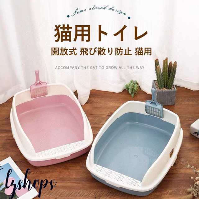 猫トイレ 大きい ネコ 砂 小型 大型 猫 トイレ 四角 におい対策 猫砂 大容量 シンプル 開放式 飛び散り防止 猫用 ネコ用品 スコップ付き