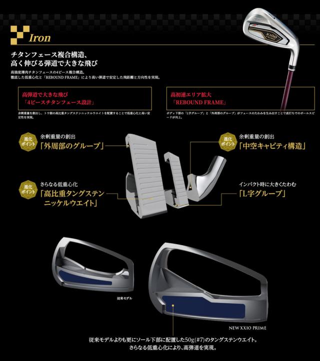 チタンフェース複合構造、高く伸びる弾道で大きな飛び。ゼクシオ プライム アイアン。