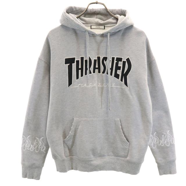jouetie ジュエティ スラッシャー コラボ 長袖 ヴィンテージ加工 スウェットパーカー M グレー x THRASHER レディース