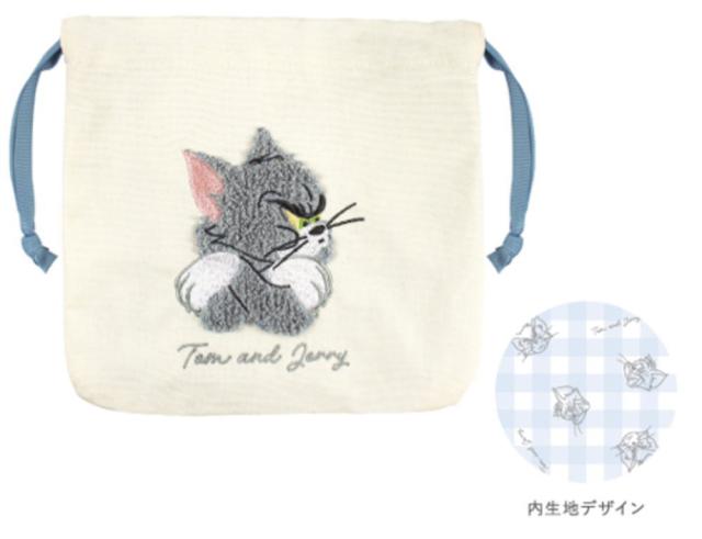【送料無料】【トムとジェリー】サガラ刺繍巾着ポーチ【トム】【ワーナー】【アニメ】【ケース】【小物入れ】【袋】【収納】【子供】【キッズ】【雑貨】【グッズ】【かわいい】