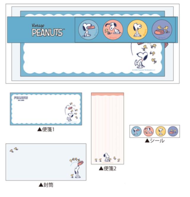 カミ226388 【日本製】【スヌーピー】【SNOOPY】一筆箋レターセット【良いことがある】【レトロ】【ピーナッツ】【ウッドストック】【すぬーぴー】【レター】【手紙】【お手紙】【便箋】【封筒】【文房具】【雑貨】【グッズ】【かわいい】