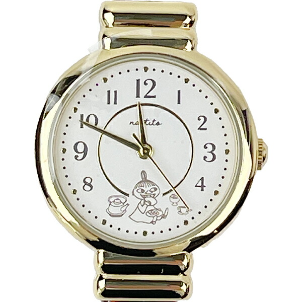 ムーミン(リトルミイ)のアクリルバングルウォッチです。ゴールドで高見えしちゃいます♪オフィスにも付けていける大人可愛いデザイン☆箱つきなのでプレゼントにもおすすめです♪【内径:約4cm×6.2cm】【最小手首周り:15.5cm】
