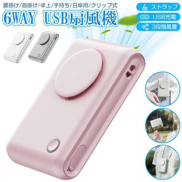 【送料無料】6WAY 腰掛け/首掛け/卓上/手持ち/日傘用/クリップ式 服の中に送風 腰掛けファン ハンズフリー ベルトファン 小型 ミニ扇風機 送風機 ベビーカー 父 母の日