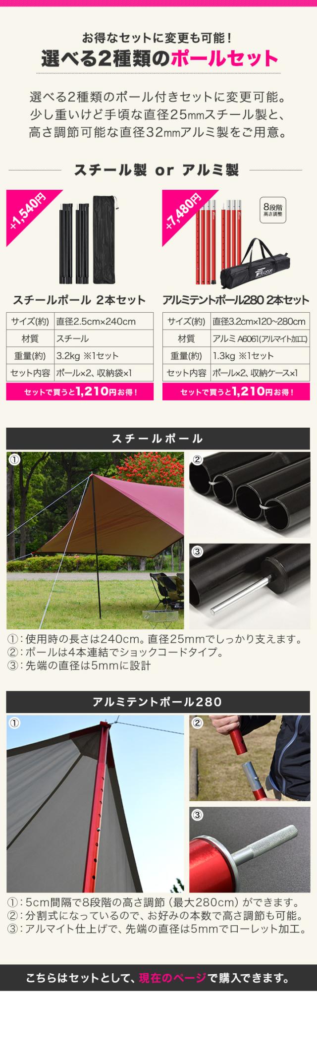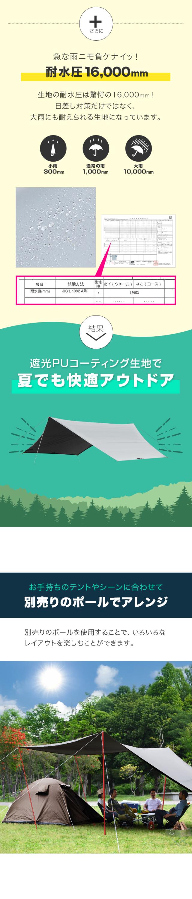 | ※[店舗管理用 URL]a06822 ※[品番]【タープ本体のみ/ポールなし/グレー:a06822】【タープ本体のみ/ポールなし/ライトベージュ:a06823】【スチールポール付き(+1540円)/グレー:a05520】【スチールポール付き(+1540円)/ライトベージュ:a05521】【アルミポール付き(+7480円)/グレー:a05522】【アルミポール付き(+7480円)/ライトベージュ:a05523】 |