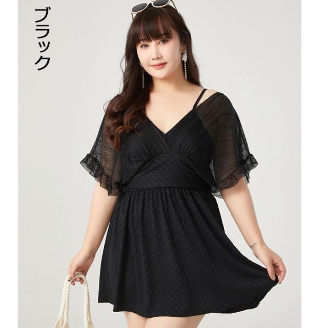 水着 ワンピース 体型カバー水着 レディース 大きいサイズ ぽっちゃり 20代 30代 40代 ママ水着 おしゃれ かわいい オールインワン 長袖 黒 フリル キャンディスリーブ 透け シースルー袖 ギャザー 二の腕 ウエスト カバーアップ 日焼け対策 露出控えめ
