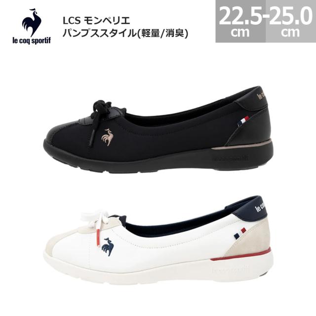 ルコックスポルティフ パンプス スニーカー LCS モンペリエ パンプススタイル(軽量/消臭) LU5SSN25LZ レディース ブラック/ブラック(BKBK) ホワイト/ネイビー(WHNV) 22.5cm-25.0cm 消臭機能 軽量 低反発インソール