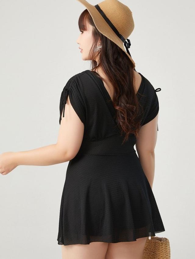 水着 ワンピース 体型カバー水着 レディース 大きいサイズ ぽっちゃり 20代 30代 40代 ママ水着 おしゃれ かわいい オールインワン 長袖 黒 フリル キャンディスリーブ 透け シースルー袖 ギャザー 二の腕 ウエスト お尻 太もも 脚 カバーアップ 日焼け対策 露出控えめ dh049zbzbm5