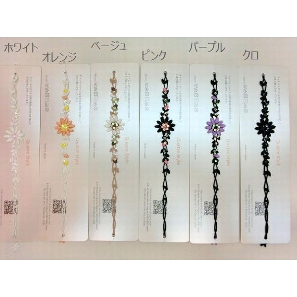 | 柔らかな肌触りで、手首のさりげないオシャレにピッタリのレースブレスレットです。 手首以外にも、足首、カバンに付けても◎。 男性も女性も付けられる豊富なカラーとデザインを取り揃えました。 1本づけでさりげなく、2本3本づけで個性的なオシャレなアクセントになります。 |