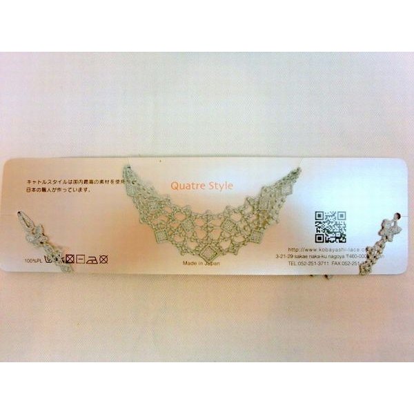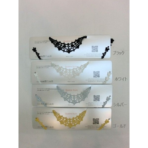 | 柔らかな肌さわりで、首元のさりげないオシャレにピッタリのレースネックレス。 首元以外にも、カバンに付けても◎。 豊富なカラーとデザインを取り揃えました。 1本づけでさりげなく、個性的なオシャレなアクセントになります。 |