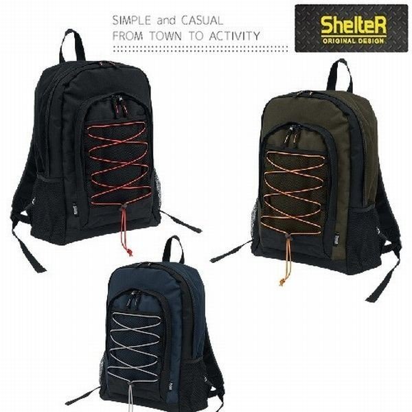 リュックサック デイパック メンズバッグ メンズファッション 定番 SHELTER カラーゴム ブラック カーキ ネイビー 行楽シーズン 買い物 【送料無料】