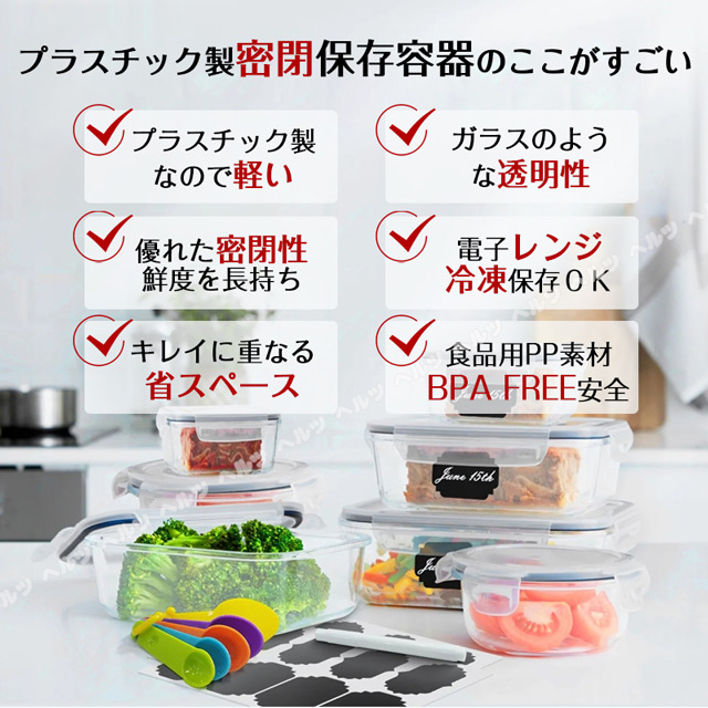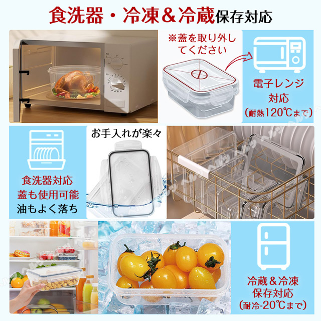 「クーポン配布中」【4個/8個/10個/12個セット】 食品 保存容器 プラスチック 密閉 耐熱 電子レンジ 食洗機 冷蔵 冷凍対応 弁当箱 お弁当箱 つくおき 作り置き 保存 密閉力アップ おかず ごはん ご飯 シンプル ふた 耐熱容器 耐熱皿