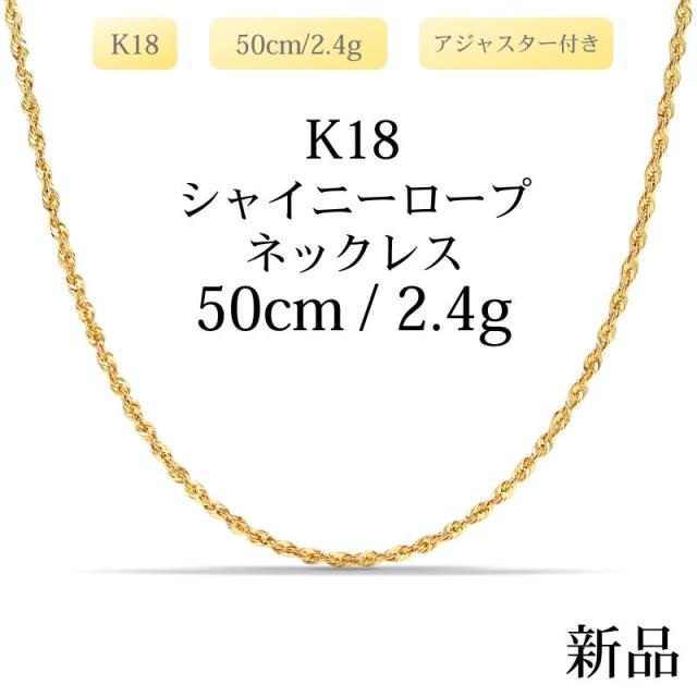 【新品】K18 18金 中空ロープチェーンネックレス 50cm/2.4g(アジャスター付き)