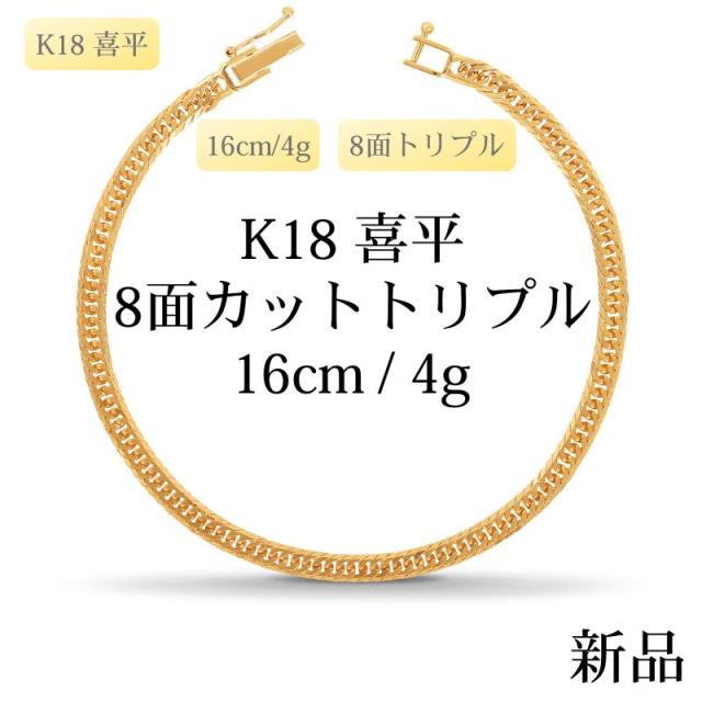 【新品】K18 18金喜平ブレスレット(8面カットトリプル)16cm/4g