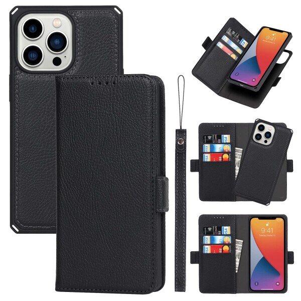 アイフォン 13 Pro Max for iPhone13 Pro Max ケース 手帳型 for iPhone 13promax 財布型 分離式 両用 2way 取り外し自由 カバー 縄掛け 高?PUレザー+TPUソフト ケース 二合一の設計 ICカード ベルトマグネット -ブラック
