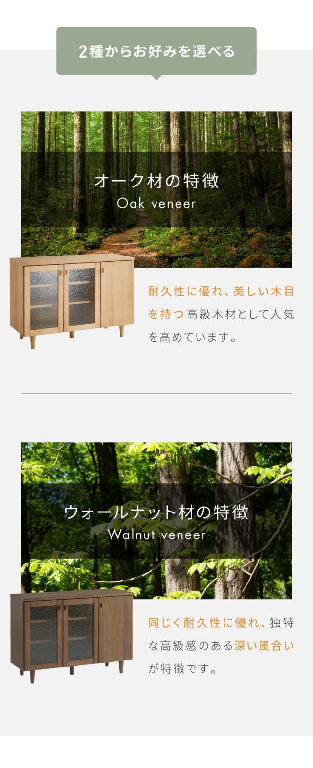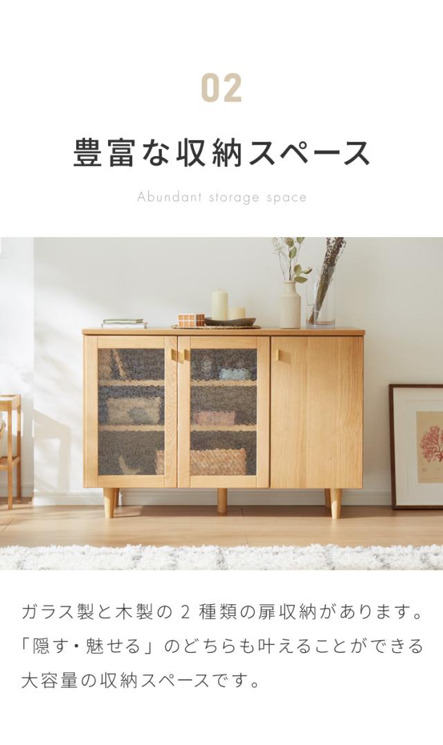 キャビネット 幅110cm サイドボード 天然木 脚付き ガラス扉 リビングボード 収納家具 サイドチェスト オーク ウォールナット 木製 リビング ダイニング(代引不可)【送料無料】