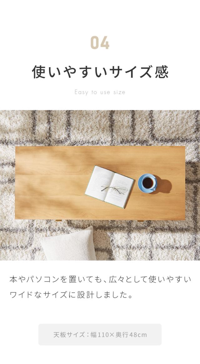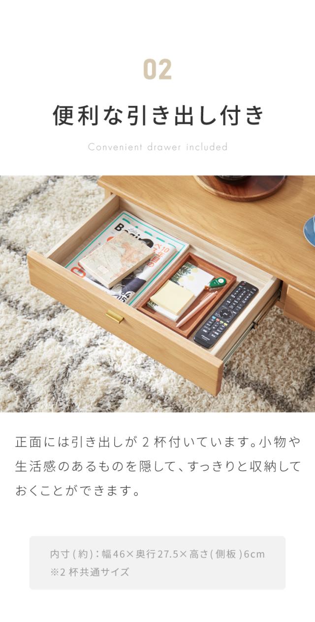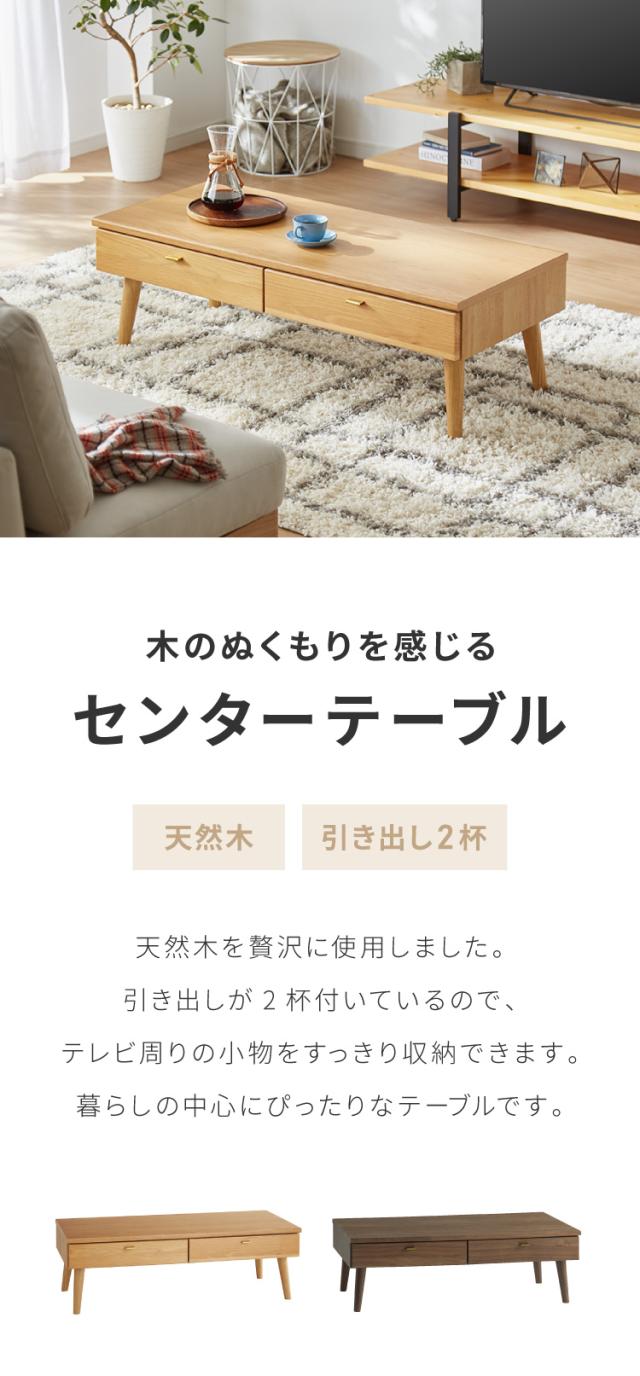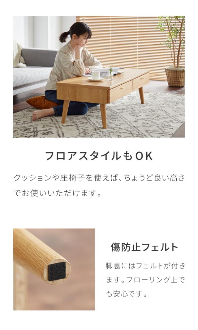 センターテーブル 110×48cm 天然木 木製 4本脚 引き出し付き ローテーブル リビングテーブル テーブル ワンルーム リビング 一人暮らし 新生活 おしゃれ かわいい(代引不可)【送料無料】