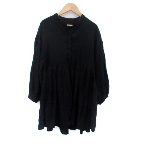 【中古】リエディ RE:EDIT シャツ ブラウス バンドカラー 長袖 ロング丈 M 黒 ブラック /HO16 レディース