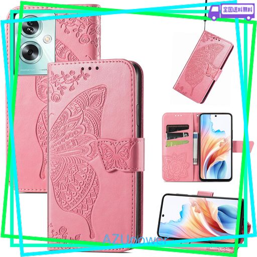 に適用するOPPO A79 5G ケース 手帳型 ノートブック型携帯電話保護カバー多機能携帯電話ホルスター(バタフライピンク)