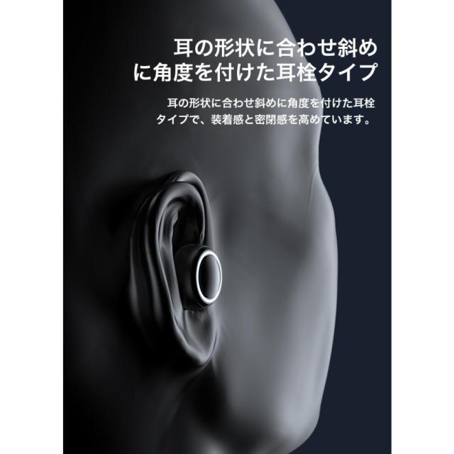 耳の形状に合わせ斜めに角度を付けた耳栓タイプで、装着感と密閉感を高めています。